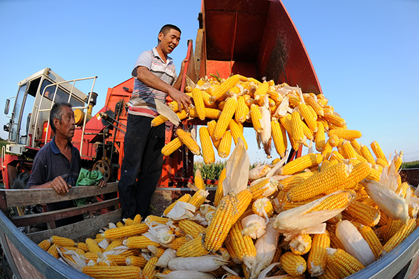 9月29日,河北省任縣任城鎮(zhèn)西縣南村農(nóng)民將收獲的玉米裝車。