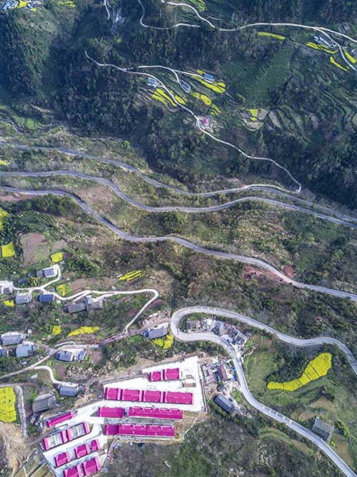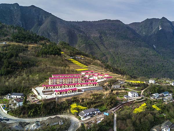 這是3月25日航拍的湖北省興山縣昭君鎮(zhèn)灘坪村嚴(yán)家坡易地扶貧搬遷安置小區(qū)。