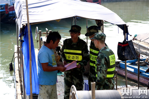汕頭邊防支隊達(dá)濠邊防派出所官兵來到漁船上排查防臺風(fēng)安全隱患。周峰 攝