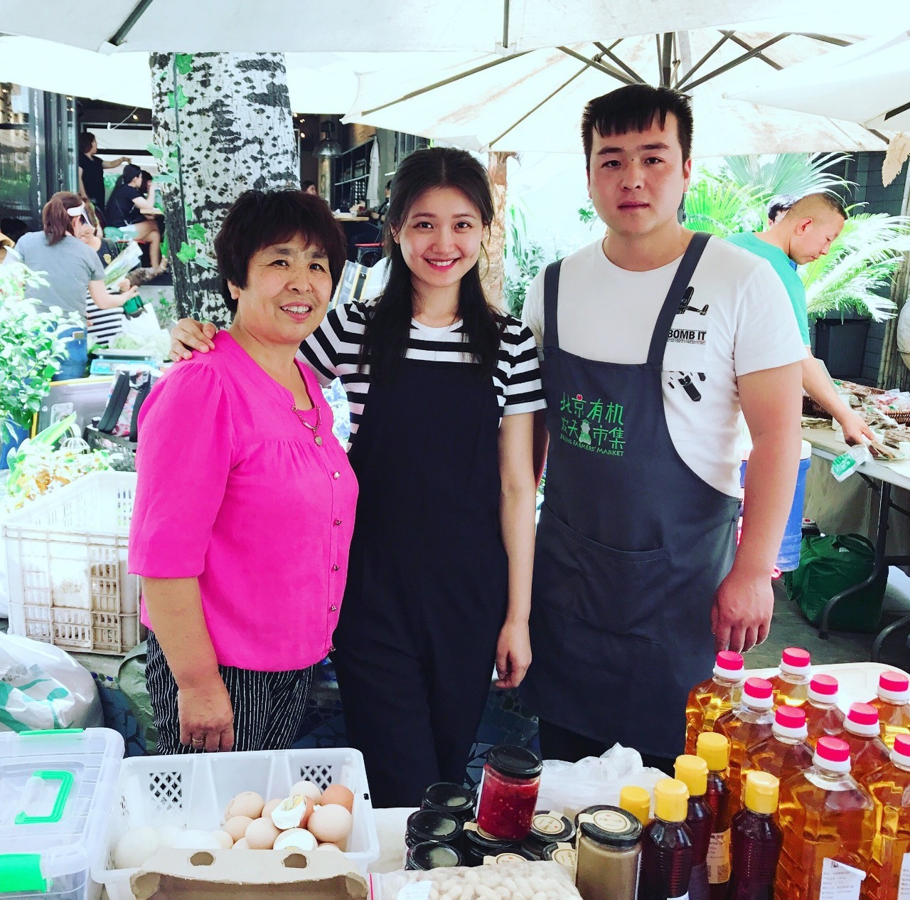 在北京有機農(nóng)夫市集幫陳子彧和陳媽媽王新英賣農(nóng)產(chǎn)品