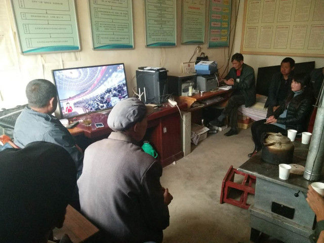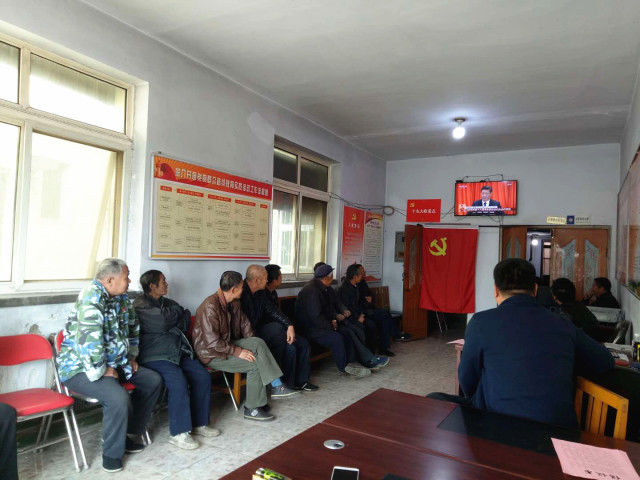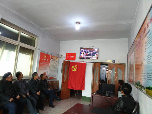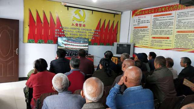 河南省林州市合澗鎮木纂村30多名黨員到村黨員活動中心收看直播。(攝影:中國鄉村之聲農民觀察員路春生)