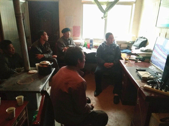 甘肅省臨洮縣康家集鄉大頭山村黨員們在屋里圍坐在一起觀看。(攝影:中國鄉村之聲農民觀察員王富江)