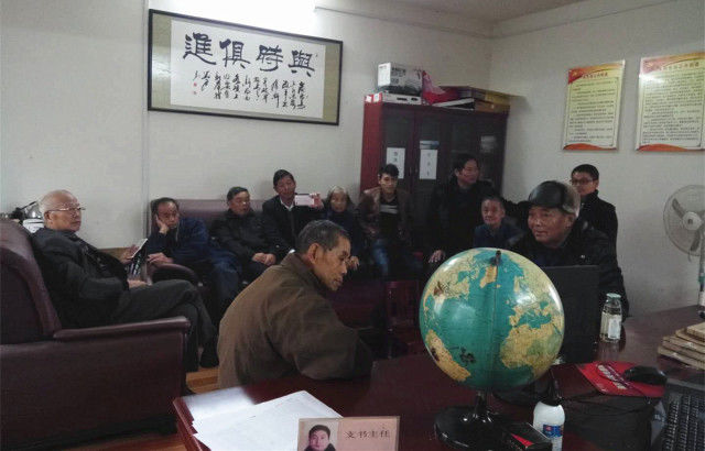 湖北省陽新縣黃顙口鎮周堡村黨員們在黨員活動室看直播。(攝影:中國鄉村之聲農民觀察員曾邦勇)
