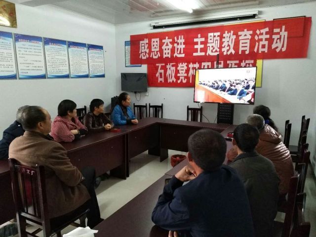 四川省遂寧市安居區聚賢鎮石板凳村黨員在村會議室收看。(攝影:中國鄉村之聲農民觀察員徐素梅)