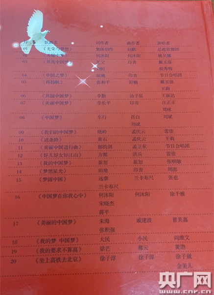 中國夢主題新創作歌曲曲目單