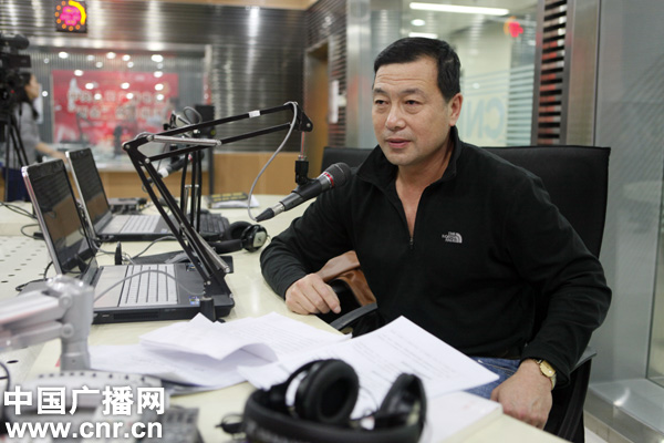 3月10日遼寧人民藝術(shù)劇院演員、郭明義的扮演者李躍民做客中國(guó)大舞臺(tái)直播間(中廣網(wǎng)記者 李雪南攝)