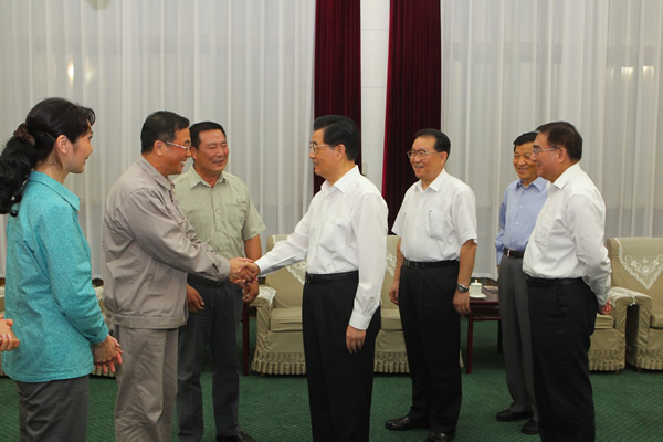 中共中央總書記、國家主席、中央軍委主席胡錦濤等領(lǐng)導(dǎo)同志親切接見《郭明義》劇組主創(chuàng)人員。
