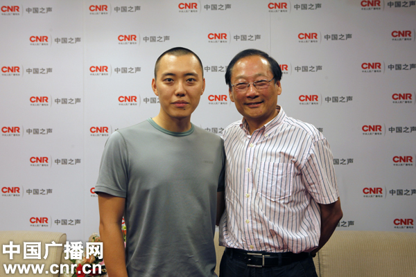 中廣網北京7月14日消息,著名樂評家陳立直播前與主持人楊昶合影留念(中廣網記者 李雪南攝)
