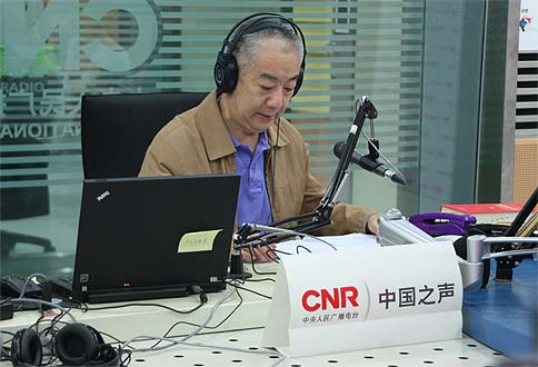 趙景勃教授與中國之聲主持人宇菲、胡凡正在直播