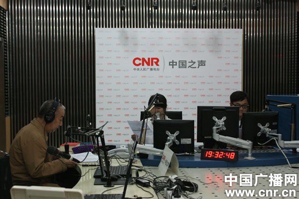 中國京劇研究所所長趙景勃教授(左一)與主持人宇菲、胡凡正在直播。