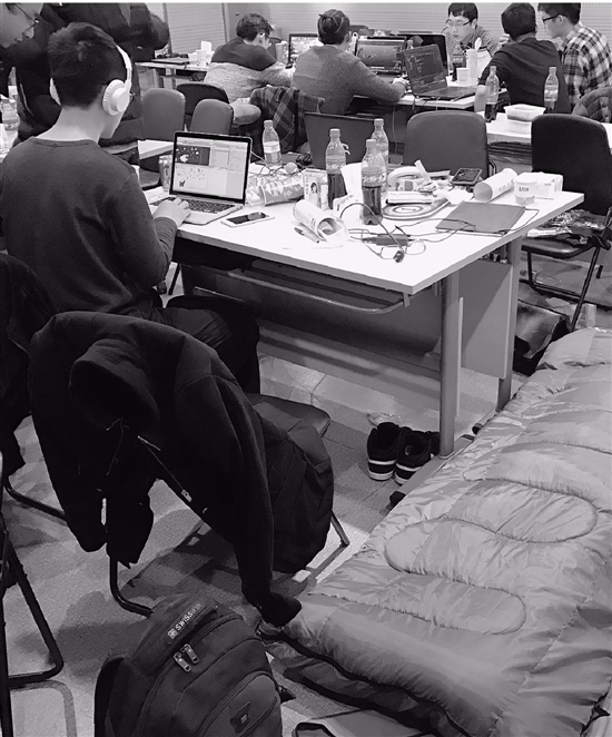 長時間的頭腦風暴讓這些年輕的創作者有些疲憊,有的參賽者已經將準備好的睡袋鋪開進行短暫的休息。隨著夜幕降臨,大家的熱情絲毫沒有降低,部分參賽者選擇睡在活動現場,這樣有問題可以及時溝通,突如其來的靈感也能隨時和小伙伴分享。