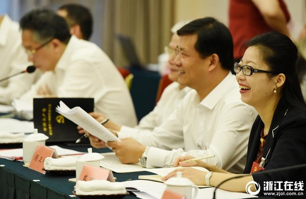 6月13日,省第十四次黨代會(huì)各代表團(tuán)分組審議省黨代會(huì)報(bào)告。代表們結(jié)合各自工作實(shí)際踴躍發(fā)言,氣氛十分活躍。(浙江在線記者  董旭明  倪雁強(qiáng)  張迪  攝)