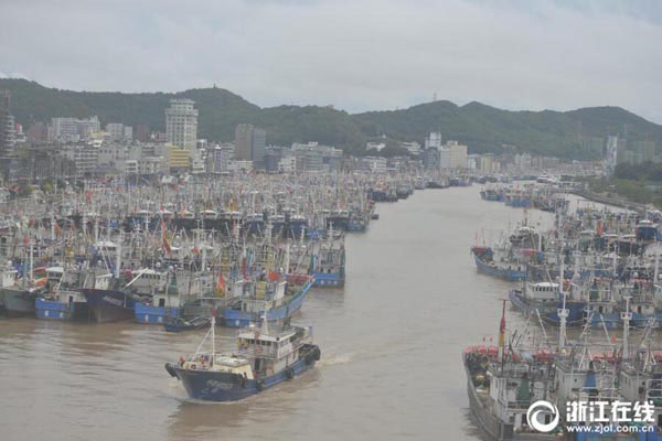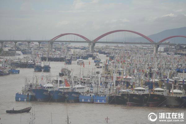 9月5日上午,舟山市出海生產(chǎn)的3000多艘漁船紛紛從東海漁場(chǎng)返回沈家門漁港,卸載海鮮躲避臺(tái)風(fēng)“玲玲”。