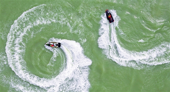4月15日,浙江正式入汛。4月14日,長興縣虹星橋鎮、水口鄉等地舉行防汛減災應急綜合實戰演練,開展水中救援、轉移被困群眾等課目訓練,增強防汛應急處置和搶險救災能力。(拍友 譚云俸 攝)