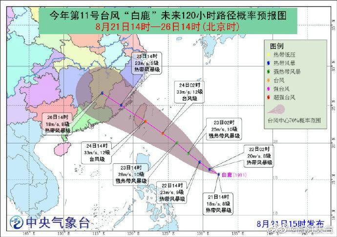 22日8時(shí),第11號(hào)臺(tái)風(fēng)“白鹿”中心位于臺(tái)灣省花蓮市東南方向約1230公里。預(yù)計(jì)將以每小時(shí)18公里左右的速度向西北方向移動(dòng),逐漸向臺(tái)灣東部沿海靠近。