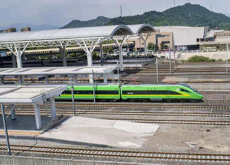 央廣網臺州6月25日消息(記者 魏煒 通訊員 沈寅 錢振霄)6月25日上午10時10分,隨著D5472次“綠巨人”復興號動車組列車鳴笛駛出臺州西站,以160公里時速駛向浙中腹地,標志著金臺鐵路正式開通運營。同時也意味著金華磐安和臺州仙居兩地就此結束了不通火車的歷史,填補了浙江中東部鐵路網的空白。