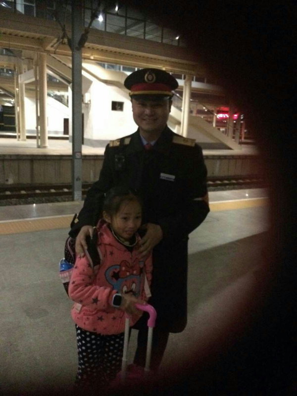1月16日傍晚18點57分許,義烏火車站10號站臺G1654次正點發(fā)車,車站客運員宋杰發(fā)現(xiàn)有一個小女孩孤單的站在10站臺5號地標(biāo)處哭泣。